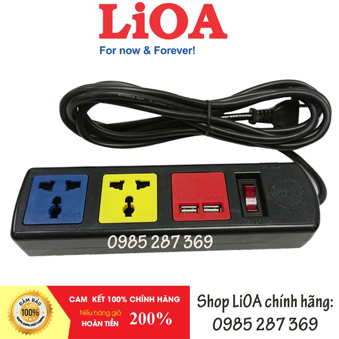 Thiết Bị Điện Gia Dụng > Mạch điện & Phụ tùng > Ổ cắm điện & Dây nối || Ổ LIOA có cổng sạc USB 5V-1A 3D32NUSB 3 ổ + 1 công tắc đa năng ( 3m dây ) - Bảo vệ quá tải bằng CBCòn hàng