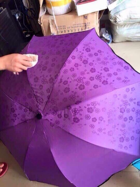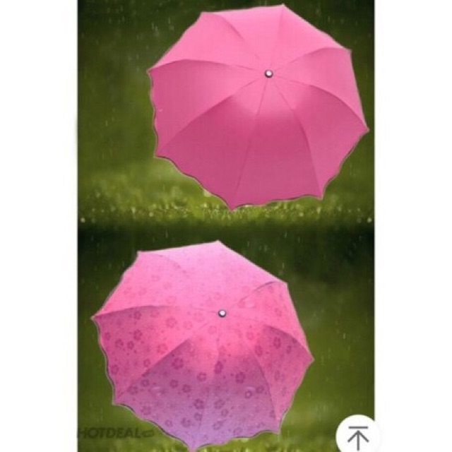 - Chiếc ô thiết kế đặc biệt: Khi gặp nước sẽ xuất hiện hình các bông hoa xinh xinh trên ô