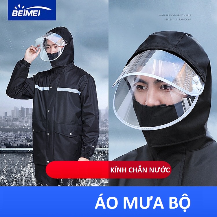 Bộ Áo Mưa Cao Cấp Chống Thấm Nước Có Kính Chắn Nước | Siêu Bền, Có Phản Quang | Áo Mưa Bộ