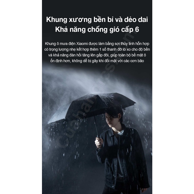 UREVO Electric Umbrella Xiaomi là ô mưa điện thông minh, khả năng tự gấp tự mở dù chỉ bằng 1 nút bấm, sạc 1 lần đủ dùng 150 lần, lớp bảo vệ chống tia uv 99%, khung xương bền bỉ chịu được gió cấp 6.