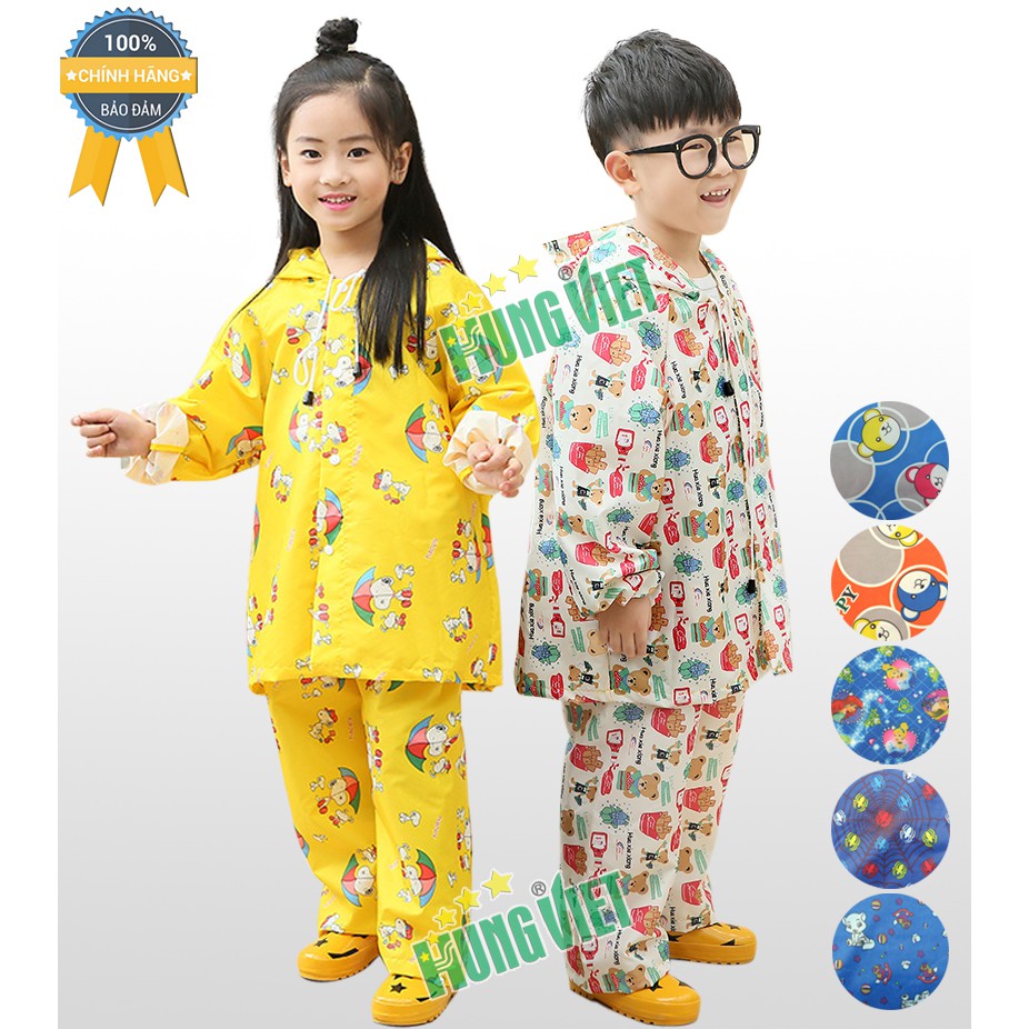 Bộ áo mưa trẻ em vải siêu nhẹ chống thấm Hưng Việt