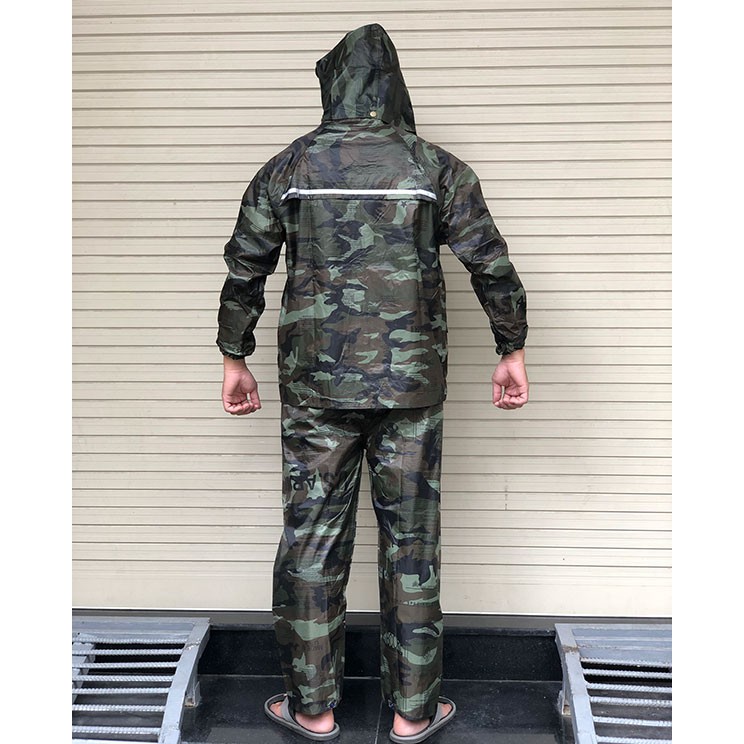 Bộ áo mưa bao gồm 1 áo, 1 quần, 1 nón, 1 túi vải, vừa che chắn tốt khi đi mưa, vừa giúp bạn có thể dễ dàng điều khiển xe máy.