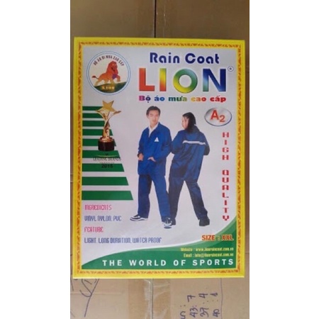 Tên sản phẩm: Bộ áo mưa vải dù cao cấp Lion 2 lớp – không thấmXuất xứ: Việt Nam