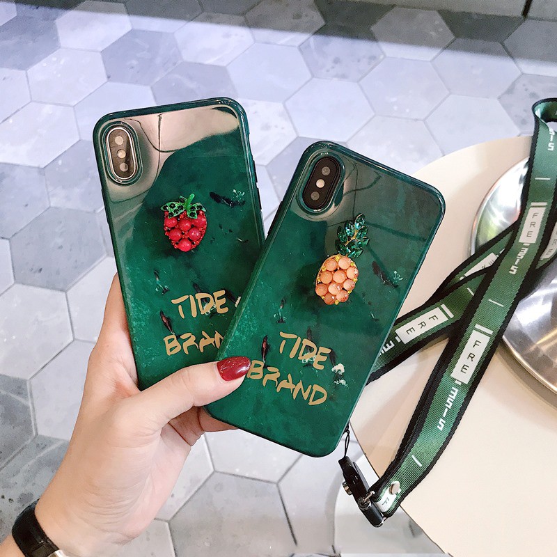 - Ốp lưng dẻo , kèm dây đeo , đính đá hình trái cây cho iphone X / Xs max / 8 plus / 7 plus🌈BUM STORE