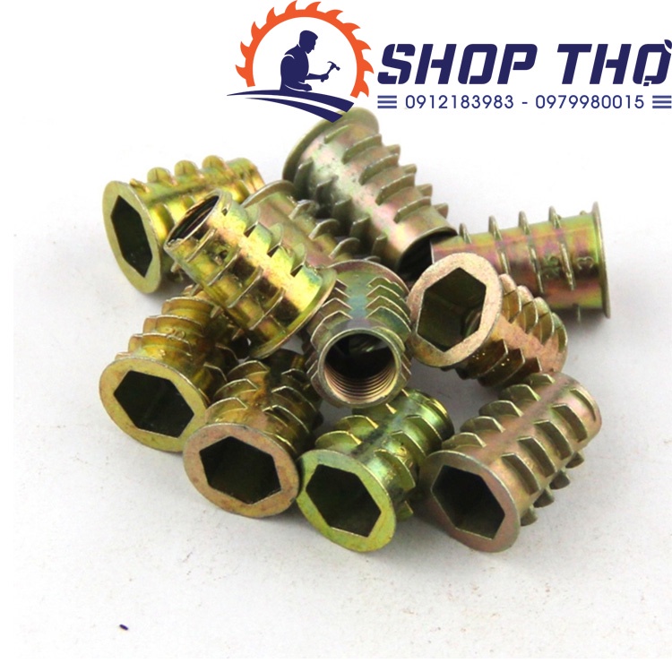 Chuyên sử dụng để cấy tạo ren với các sản phẩm đồ gỗ lắp ghép, bắt bulong, nút vặn...Ốc dày, miệng hình lục giác, bên trong là ren M10 vừa với bulong M10, chiều dài ốc là 20mm.