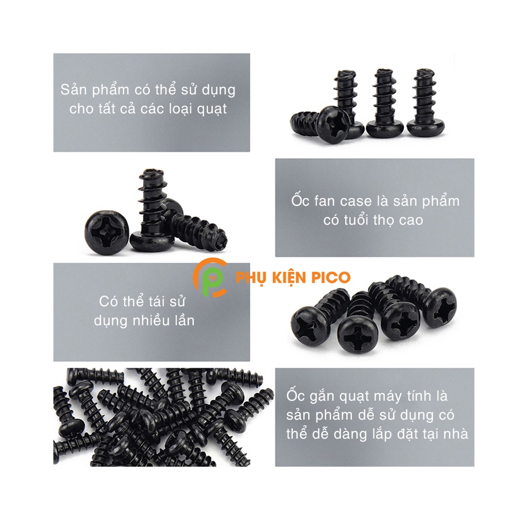 • Ốc kim loại gắn quạt máy tính có tác dụng cố đinh vị trí của quạt trong thùng máy tính, tránh di chuyển xê dịch làm hỏng hóc quạt, phát huy tối đa công năng của quạt