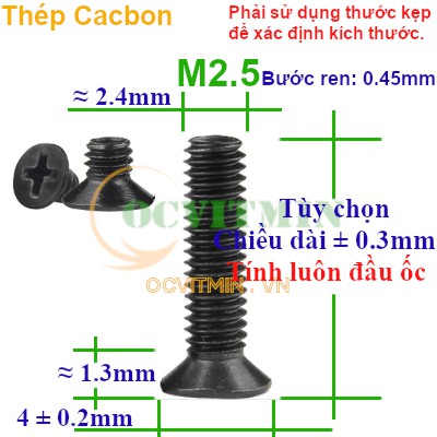 Ốc Vít Bake Đầu Bằng M2.5 Thép Cacbon