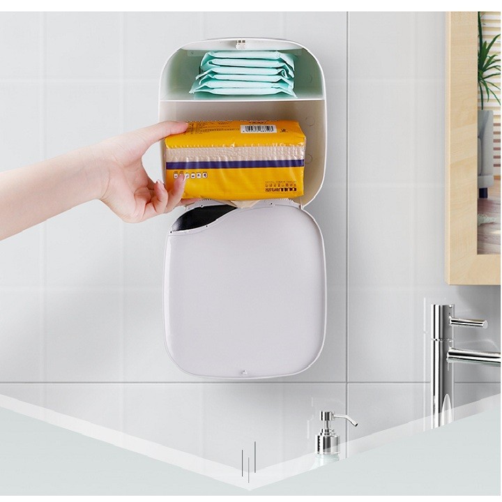 Sản phẩm gồm: Hộp đựng giấy và miếng dán tường Chịu Lực (siêu chắc, chịu nước, không bao giờ rơi)