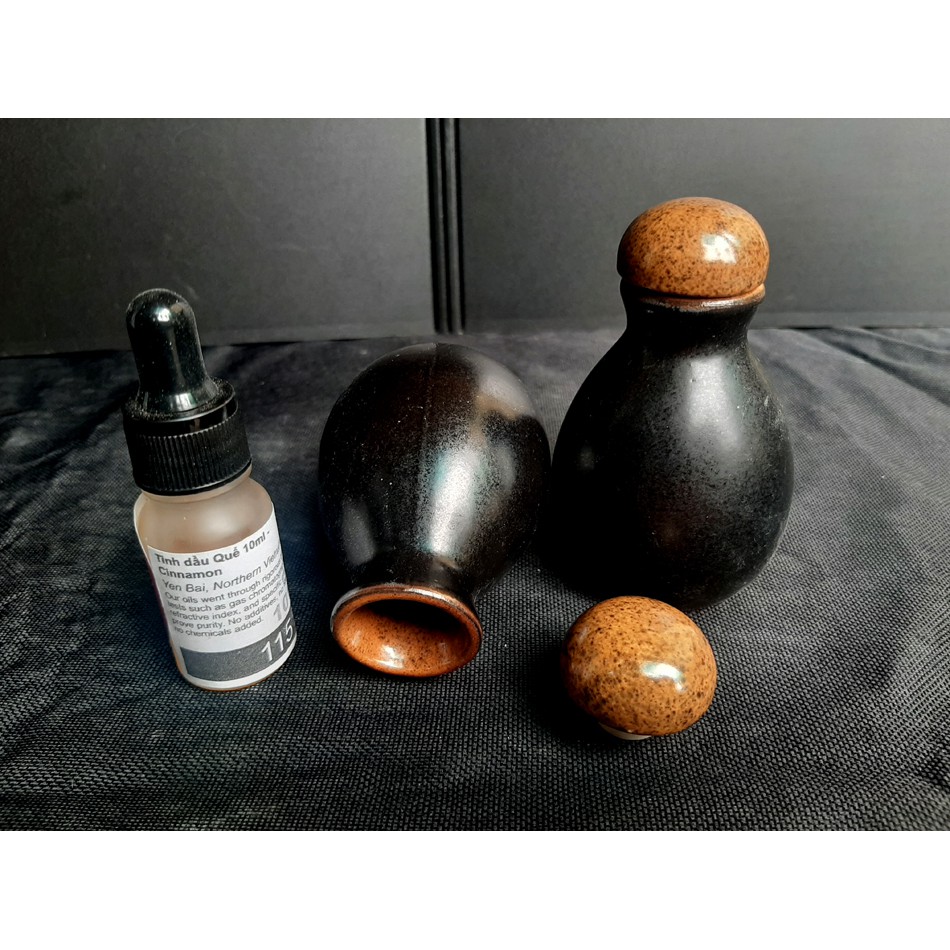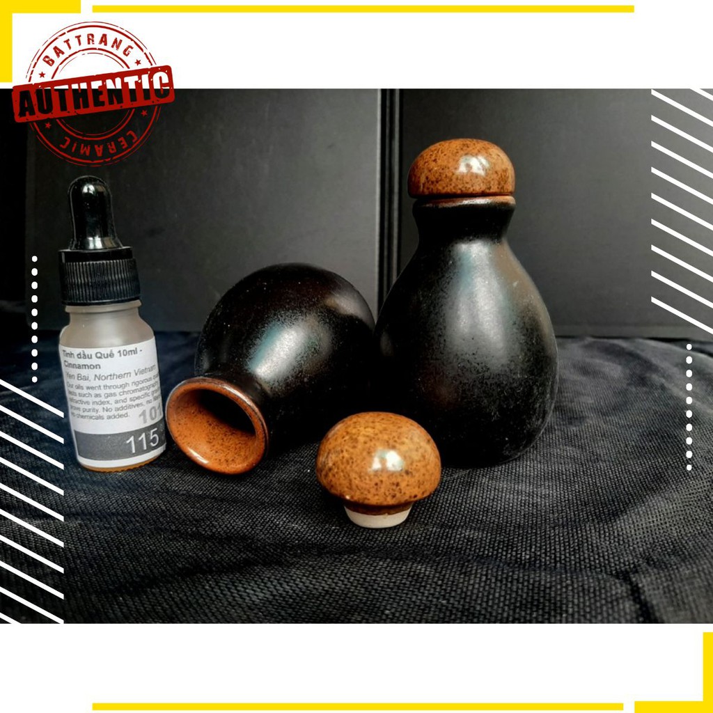 Nếu bạn đang cần tìm lọ đựng tinh dầu, lọ dầu thơm gốm sứ bát tràng, thì hôm nay chúng tôi sẽ giới thiệu thêm cho các bạn lọ đựng tinh đầu men gốm, màu đen , bên trong màu hơi vàng đất,