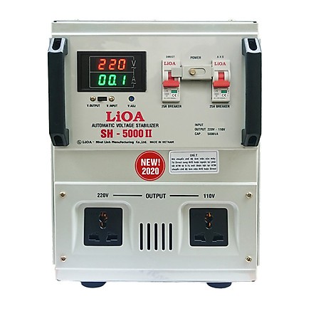 Ổn áp Lioa 5KVA dải 150 new 2020Ổn áp Lioa có công suất 5KVA phù hợp sử dụng cho các thiết bị điện trong gia đình như: bình nóng lạnh, máy điều hòa, bóng đèn, tivi, tủ lạnh, máy giặt, quạt điện... Mô tơ dây đồng đảm bảo độ bền dài lâu, chống quá tải khi hoạt động. Đồng hồ Led hiển thị điện áp và dòng điện