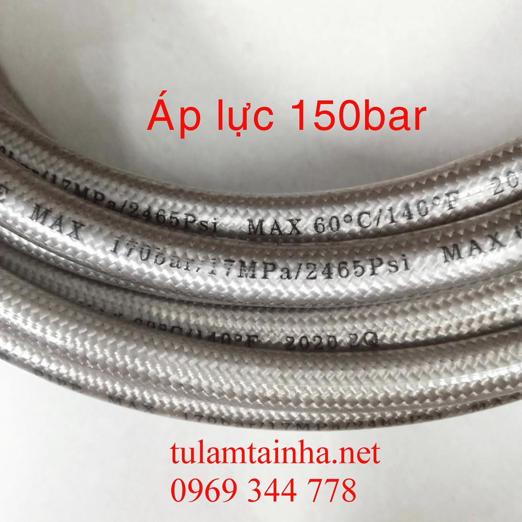 Chất liệu bố nhựa 3 lớp, 2 đầu ren phi 22mm, chiều dài 7 mét, 10 mét, 15 mét và 20 mét, dùng cho máy rửa xe gia đìnhỐng chịu áp lực tối đa 170 bar