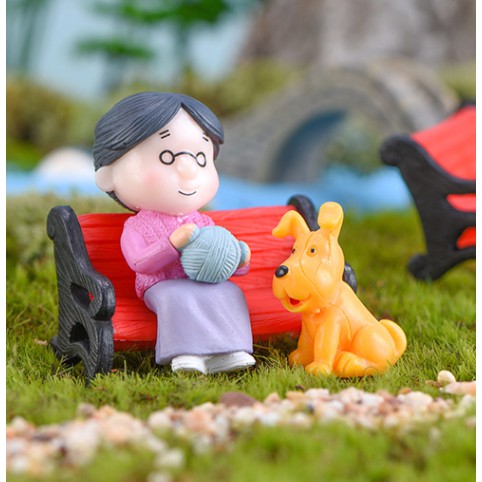 Tượng Ông Bà Già Ngồi Ghế Trang Trí Tiểu Cảnh Sen Đá❌ Lưu ý không kèm con chó! Màu có thể sẽ ngẫu nhiên nếu hết hàng!