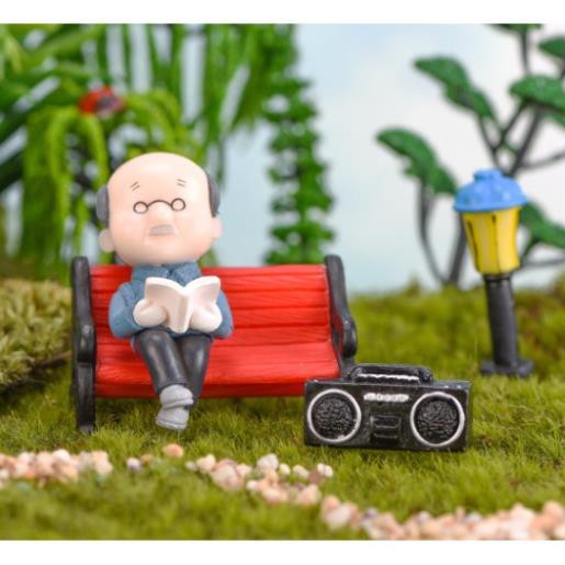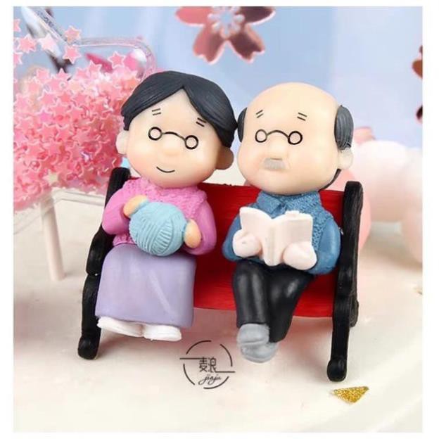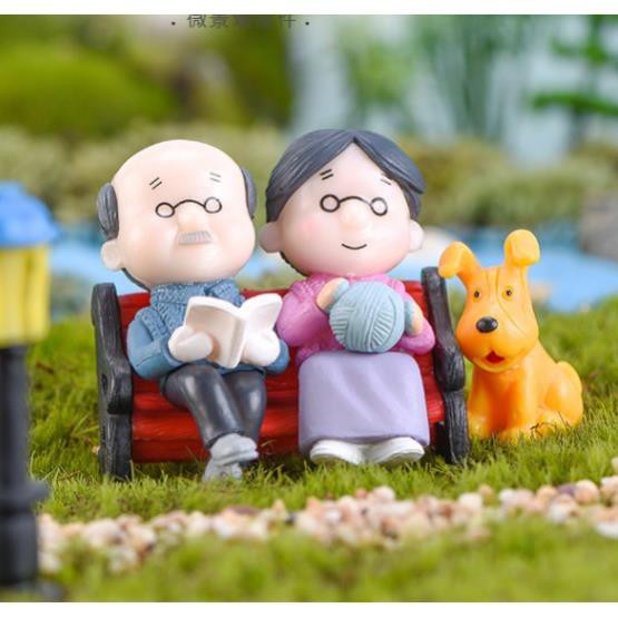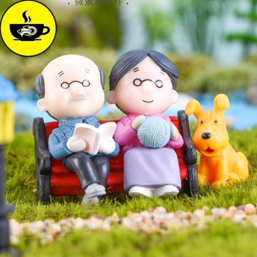 Tượng Ông Bà Già Ngồi Ghế Trang Trí Tiểu Cảnh Sen Đá❌ Lưu ý không kèm con chó! Màu có thể sẽ ngẫu nhiên nếu hết hàng!