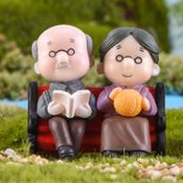 Ông Bà Già Ngồi Ghế Trang Trí Tiểu Cảnh Sen Đá