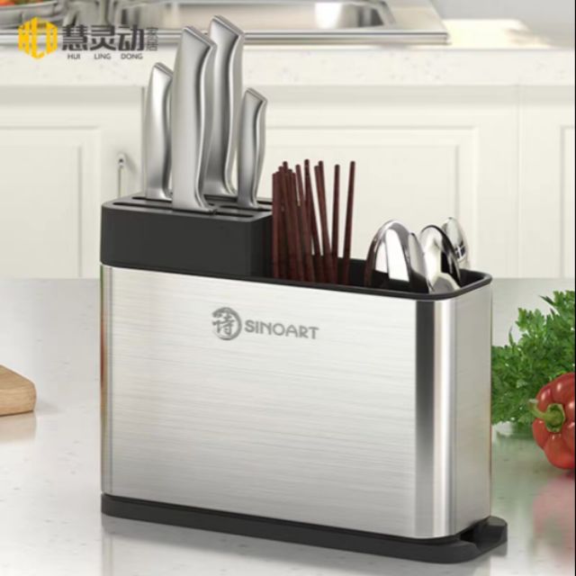 Ống cài dao đũa thìa inox cao cấp phủ bạc chống han gỉ. Dễ dàng lau chùi, hạn chế bám bẩn. Có khay hứng nước giúp đũa, thìa của bạn luôn khô ráo, sạch sẽ.Kích thước: 27.2×9×20.8cm(dào, rộng, cao)