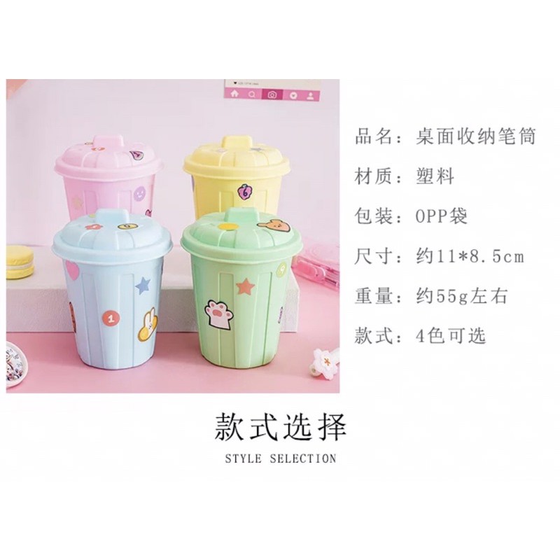 💜 Thùng rác mini chất liệu nhựa, màu sắc trẻ trung tươi vui, nhiều tiện ích vừa có thể vật trang trí,vừa là ống cắm bút, đựng vật dụng nhỏ gọn, thích hợp trang trí và làm quà tặng độc đáo!Kích thước:11*8,5cm