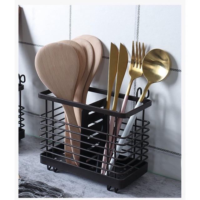 Ống cắm đũa 2 ngăn sơn tĩnh điện màu đen cao cấp bền đẹp