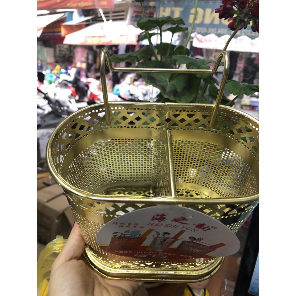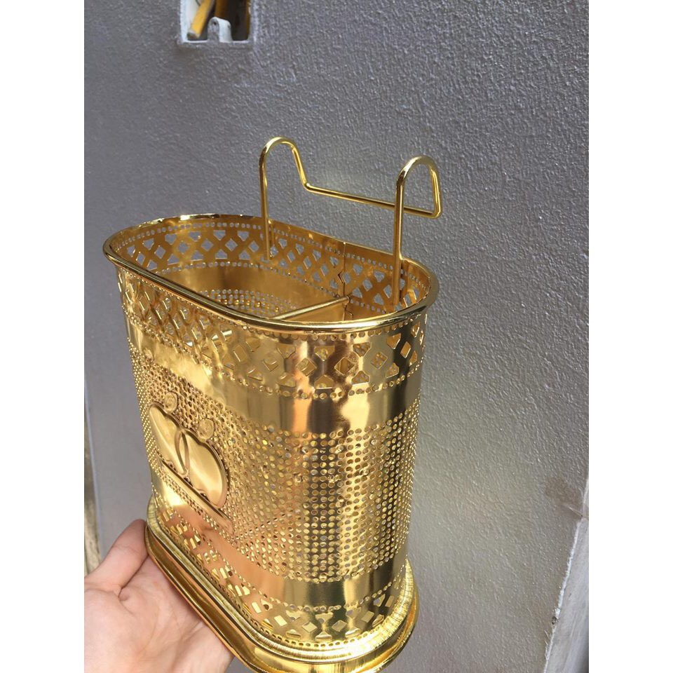 Ống đũa được làm bằng chất liệu mạ đồng sáng bóng bền đẹp, không bị gỉ sét theo thời gian. (TH.30876)- Thiết kế gồm 2 ngăn, có thể đựng được muỗng, đũa, dao, kéo… cho nhà bếp của gia đình bạn thêm gọn gàng, ngăn nắp.