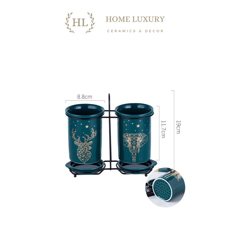 Nhà cửa & Đời sống > Bộ đồ bàn ăn > Bộ dao kéo || Ống cắm đũa sứ xanh cao cấp | Ống đũa 2 Xanh Ngọc Bích | 2 ỐNG ĐỰNG ĐŨA CHẤT LIỆU SỨ KHUNG KIM LOẠICòn hàng