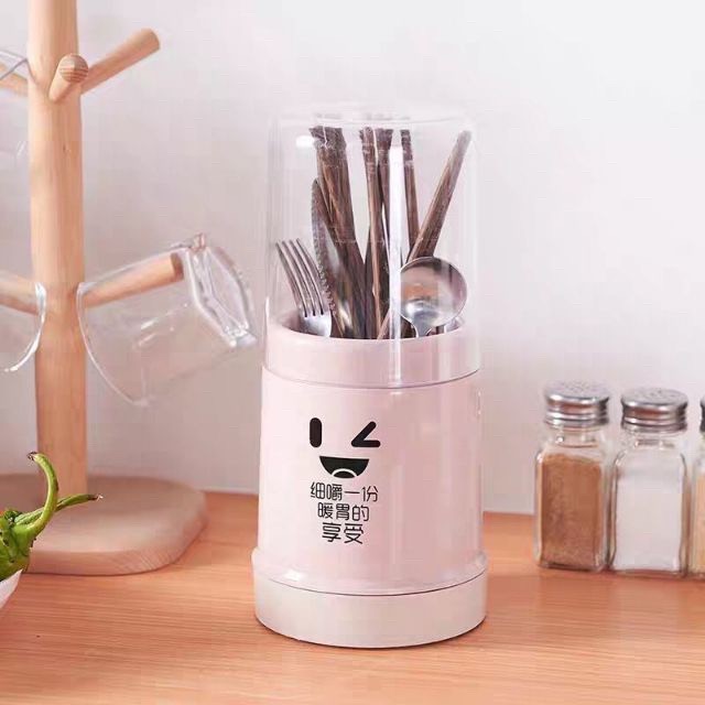 ỐNG CẮM ĐŨATHÌA CÓ NẮP ĐỂ BÀN HÌNH MẶT CƯỜI ĐÁNG YÊU