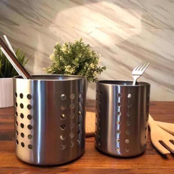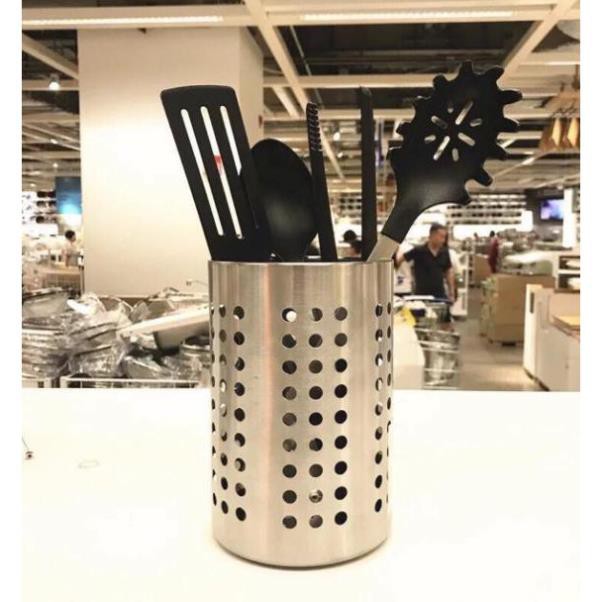 ✔️Loại thấp -----Ống cắm đũa, thìa, dĩa inox IKEA cao 13.5cm, đường kính 12cm với lỗ thoát nước bên dưới giúp đũa, thìa, dĩa luôn khô ráo---Giá bán #75k