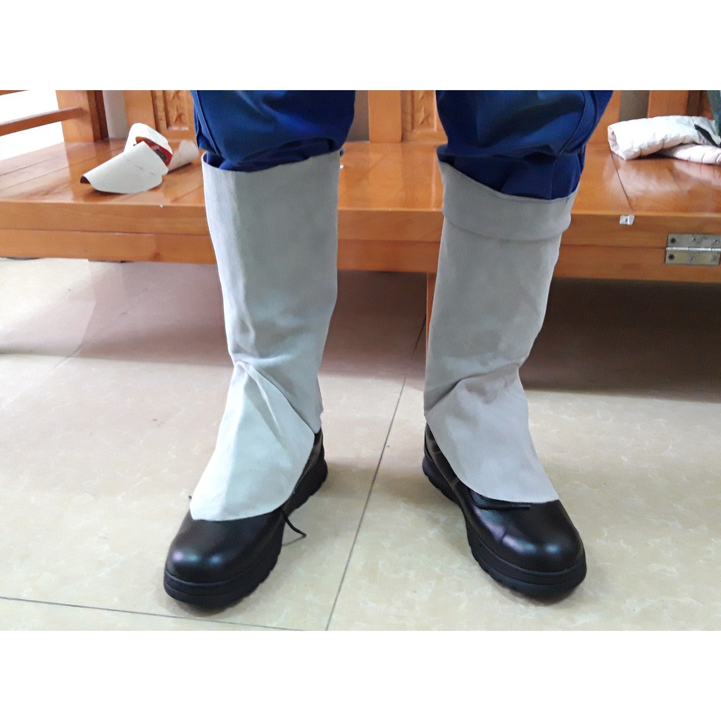 Ống Chân Da Thợ Hàn Chống Tia Lửa Chống Nóng Kèm Găng Tay Da Hàn Chịu Nhiệt Cực Tốt