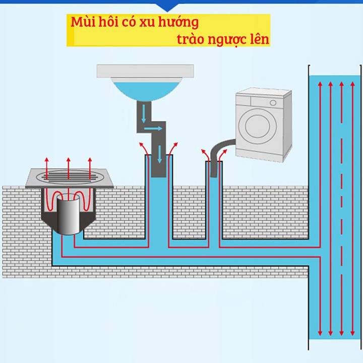 - Nguyên nhân: Do mùi hôi từ hố ga, đường ống thải xông ngược lên mà thoát sàn thông thường hiện nay chưa xử lý triệt để được. Nhất là sau 1 đêm, nước ở những nơi đó bị khô không còn tác dụng ngăn mùi nữa.