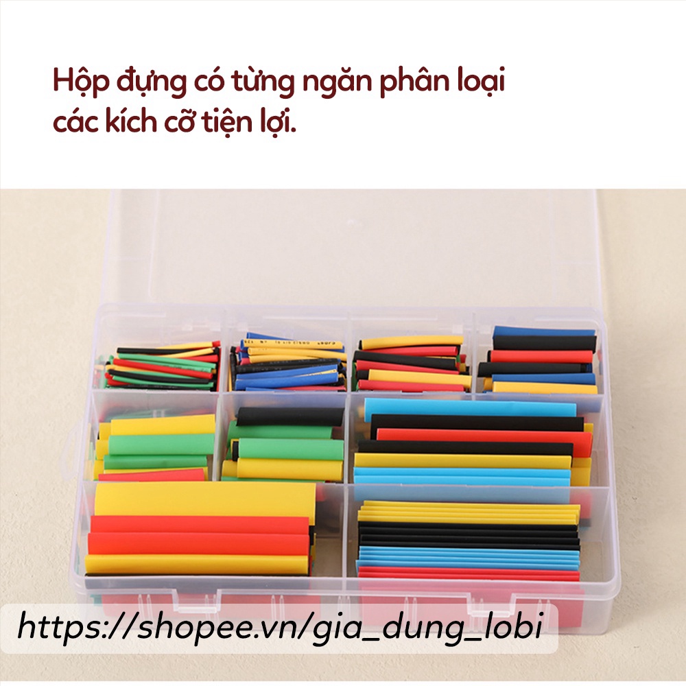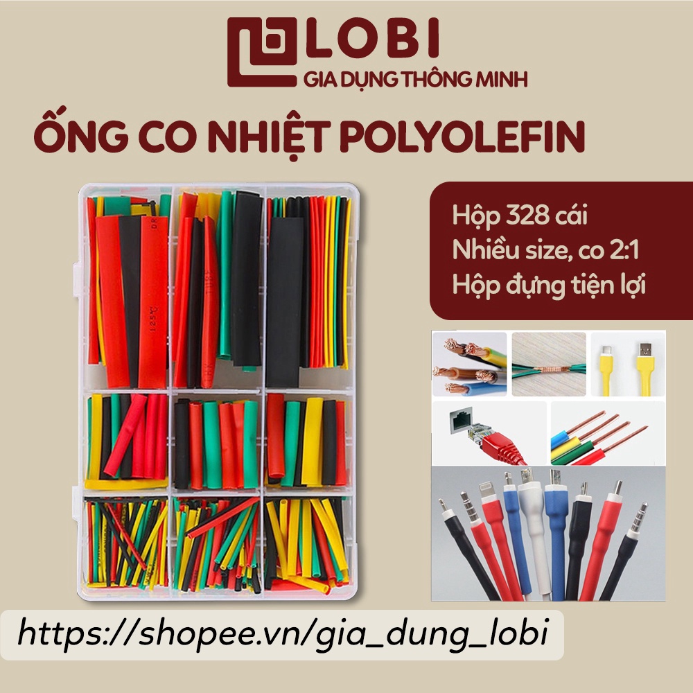 Nhà cửa & Đời sống > Dụng cụ & Thiết bị tiện ích > Dụng cụ > Khác || Ống co nhiệt nhiều kích cỡ hộp 328 cái, ống Polyolefin co nhiệt dùng để bọc cách điện cho dây cáp bộ 2:1Còn hàng