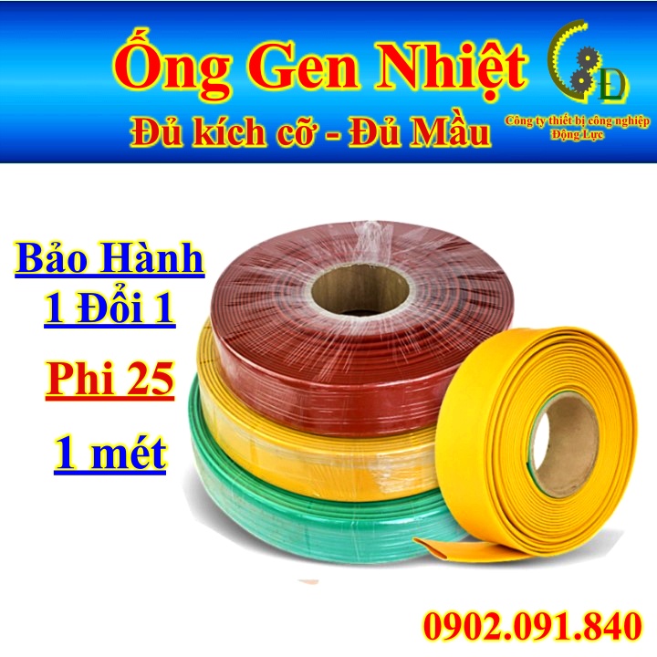 Giới thiệu [D25 1mét] Ống gen co nhiệt bọc cách điện phi 25 luồn dây điện, dây ren sun nhiệt bọc đầu cos mầu xanh đỏ vàng đen