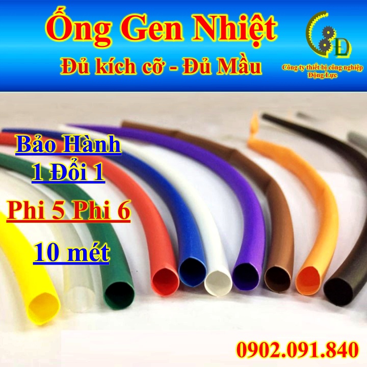 Giới thiệu [D6 D5 10mét] Ống gen co nhiệt bọc cách điện phi 5 6 luồn dây điện, dây ren sun nhiệt bọc đầu cos mầu xanh đỏ vàng đen