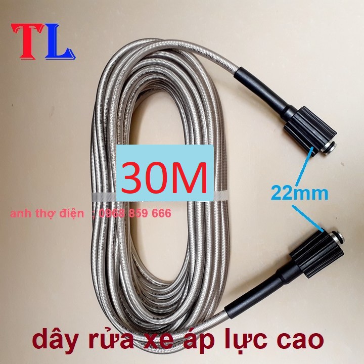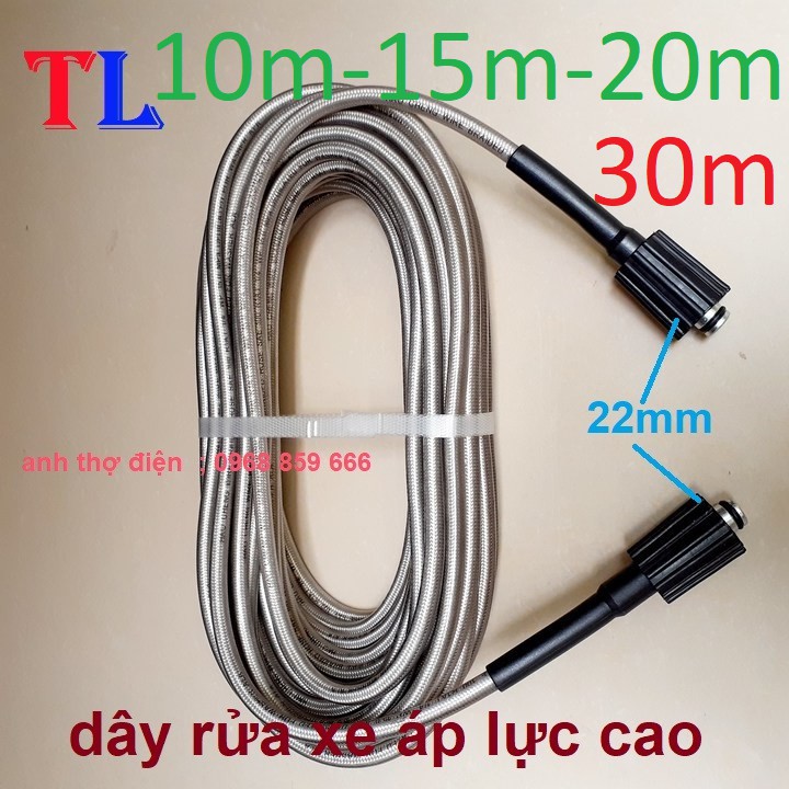 ống Dây Xịt Rửa Xe Áp Lực Cao 3 Lớp Lõi 10M-15M- 20M-30M [Ren 22mm-22mm ]