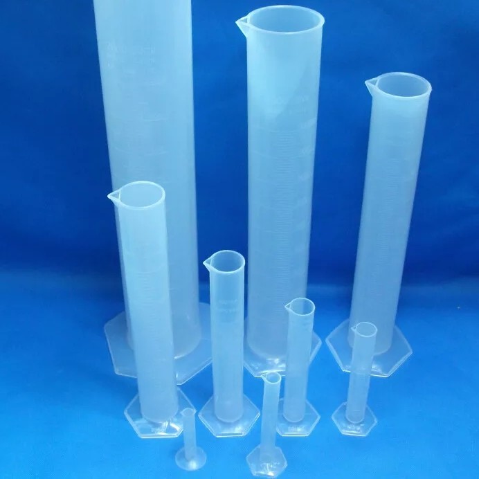 Ống đong nhựa dùng để đo thể tích dung dịch. Đế hình lục giác nên dễ dàng đứng vững.