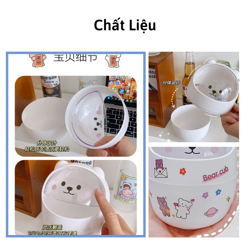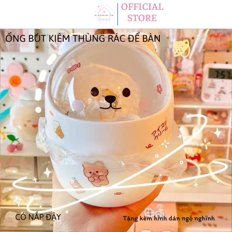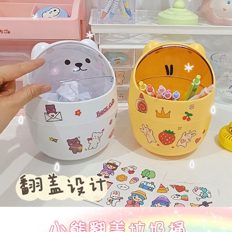 Ống đựng bút để bàn kiêm thùng rác mini hình gấu nắp lật bằng nhựa (tặng kèm sticker) Xiaomimi 5522444