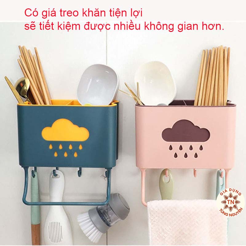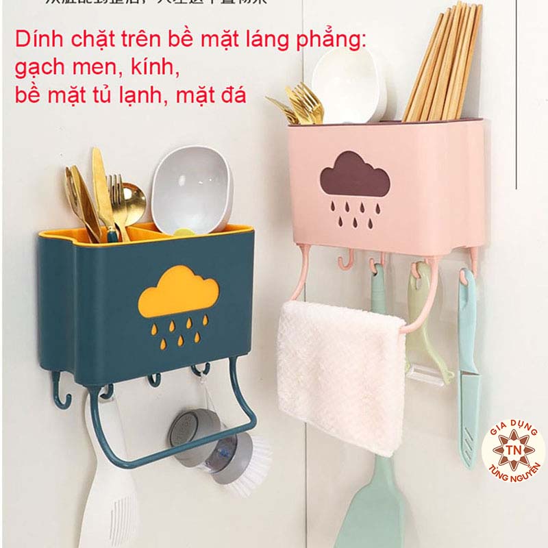 Nhà cửa & Đời sống > Sắp xếp nhà cửa > Móc treo || Ống đựng đũa đa năng treo tường hình đám mây kèm móc treo khăn dụng cụ bếp [ỐNG ĐŨA]Còn hàng