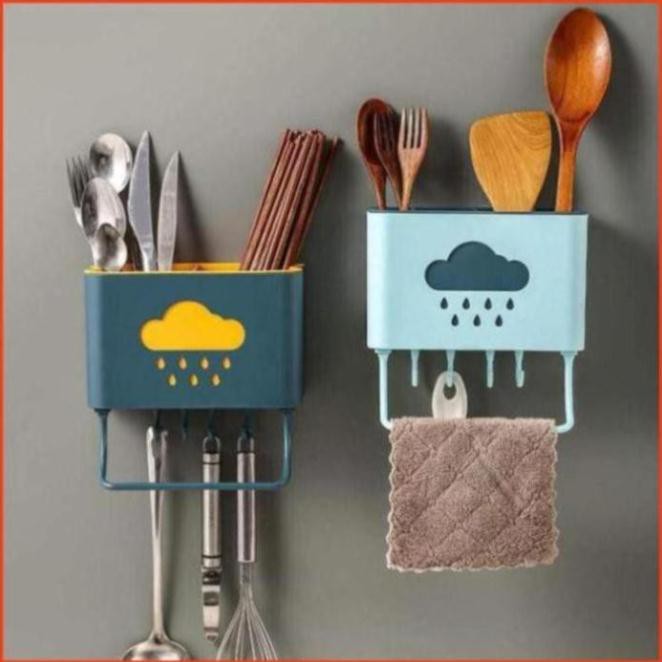 Nhà cửa & Đời sống > Sắp xếp nhà cửa > Móc treo || Ống đựng đũa thìa treo tường hình đám mây kèm móc treo khăn dụng cụ bếpCòn hàng