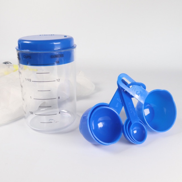 Bộ đong định lượng gồm ca đong 500ml và 6 thìa đongChất liệu: nhưa PVC
