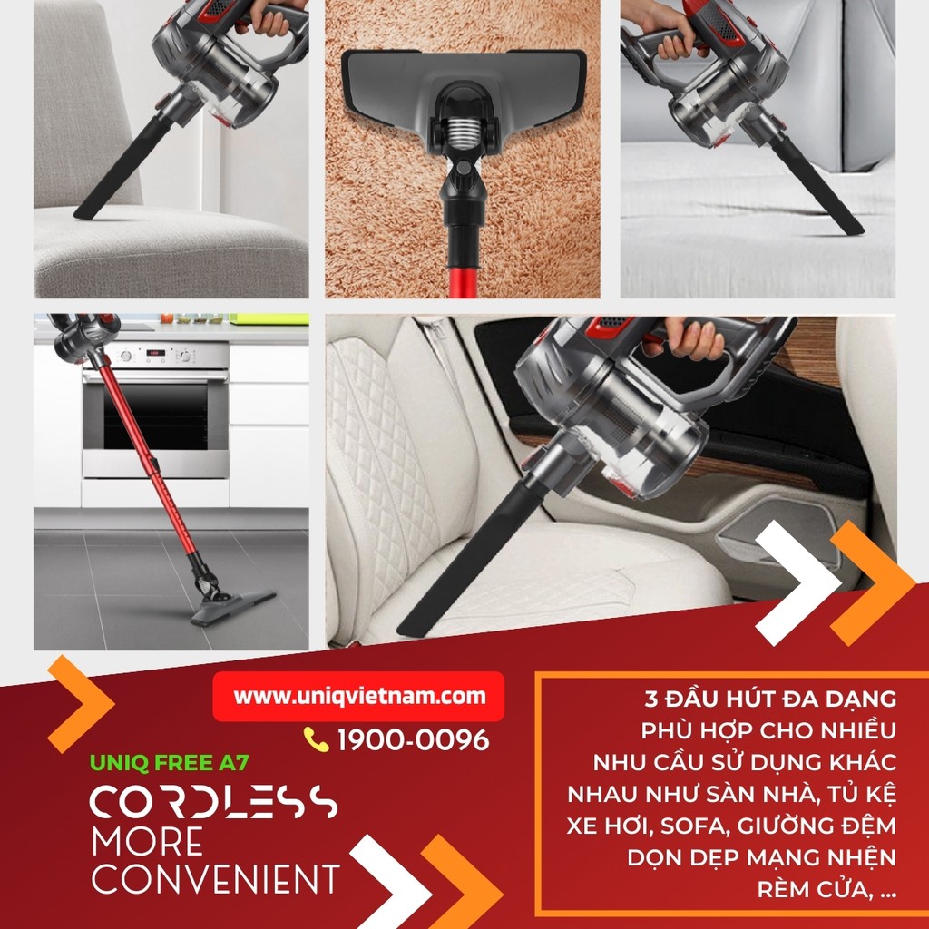 Lưu ý: Sản phẩm chỉ dùng để thay thế và sử dụng cho model máy hút bụi cầm tay không dây gia đình UNIQ Free A7