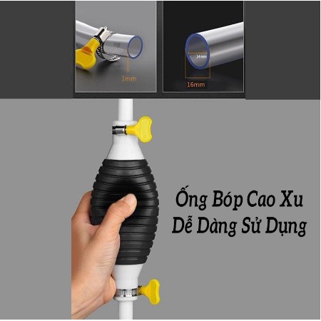 ĐẶC ĐIỂM NỔI BẬT :- Bạn giờ đây không phải lo lắng khi phải đổ xăng từ can vào bình xăng ô tô hay hút xăng từ bình ra. Sản phẩm dụng cụ hút xăng dầu chất lỏng bóp tay sẽ giúp bạn làm việc đó một cách dễ dàng , đơn giản . Ngoài ra có thể ứng dụng để hút các chất lỏng khác nhau như hút rượu , hút nước bể cá ,...