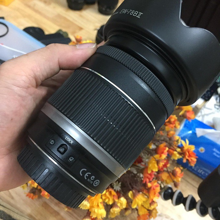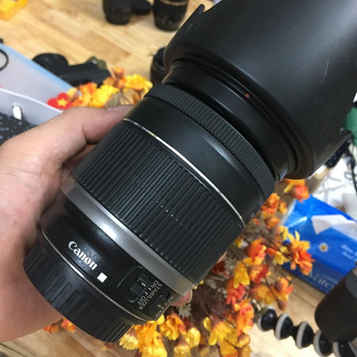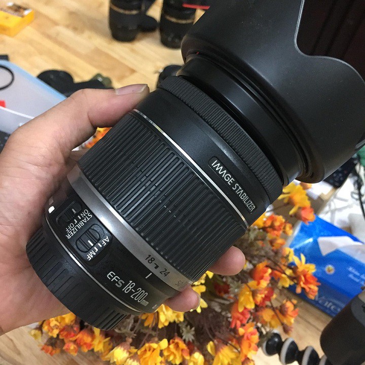Ống kính Canon EF-S 18-200 is Ống kính dải rộng cho máy Crop CanonỐng kính ngoại hình đẹp, kính trong không mốc rễ đủ cáp, hood