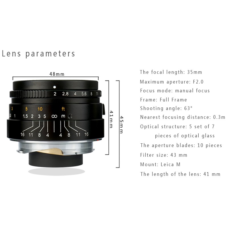Ống kính máy ảnh 7artisans 35mm F/2.0 for Leica M (MF)-Sản phẩm chính hãng mới 100%