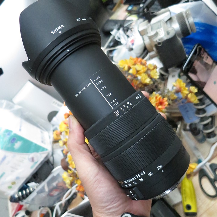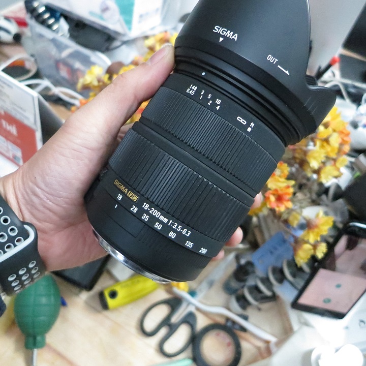 Ống kính Sigma 18-200 chống rung OS cho máy Canon CropỐng kính đẹp, hoạt đông hoàn hảo moi chức năng