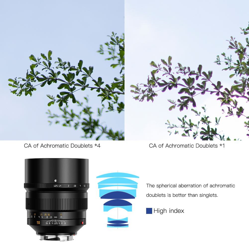 🔴 TTArtisans 90mm F1.25 sử dụng 4 Sets of Achromatic Doublets để cải thiện quang sai màu và hiệu suất độ phân giải, mang lại chất lượng hình ảnh tuyệt vời.