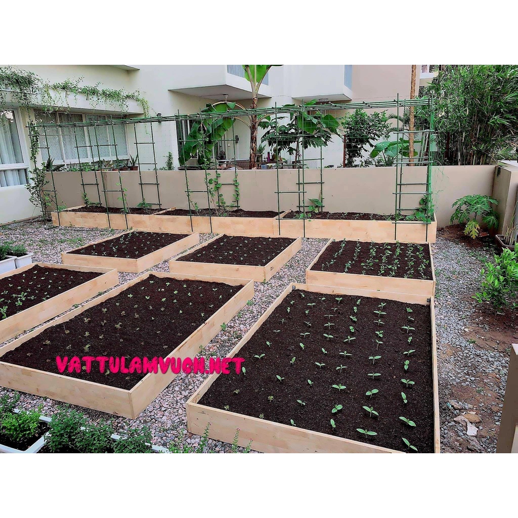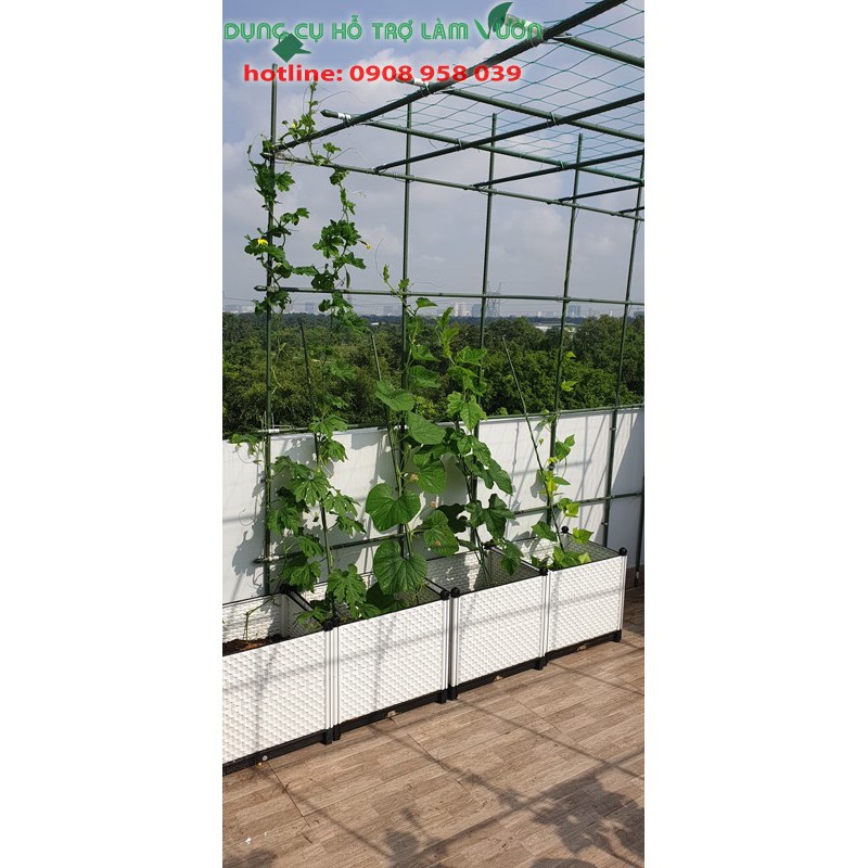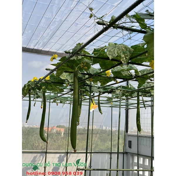 - Ống thép bọc nhựa có màu xanh bắt mắt nên lên vườn nhìn rất thích, tăng động lực làm vườn