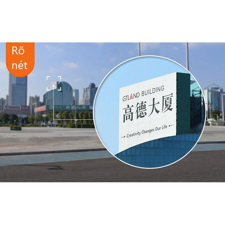 Phụ kiện đi kèm: túi đeo, dây đeo, khăn lau mặt kính, kẹp điẹn thoại, giá đỡ, sách HDSD, hộp