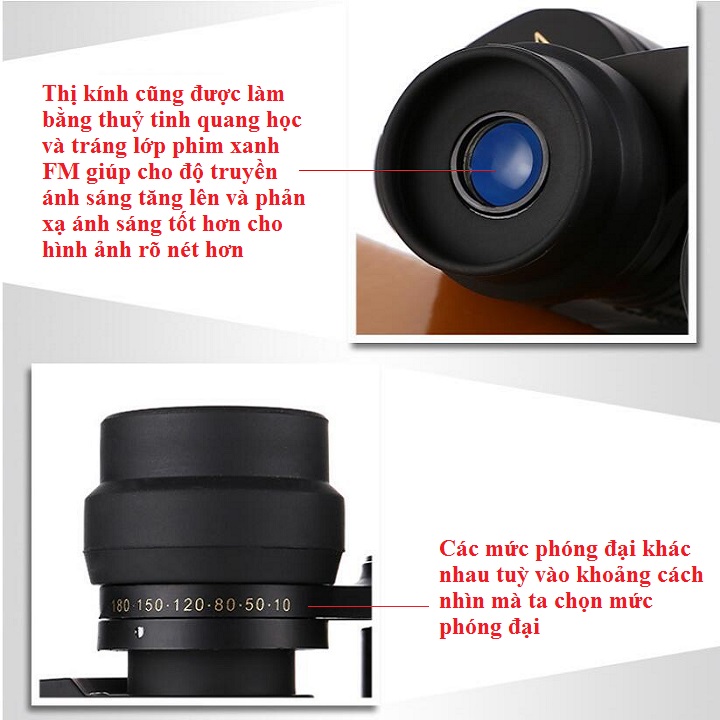 Ưu điểm nổi bật của ống nhòm cao cấp 10-180x100 là hình ảnh cực sắc nét, công nghệ thấu kính quang học kết hợp với film chống lóa khôi phục màu FM. Thiết kế tối ưu, dễ sử dụng, vỏ ngoài chắc chắn được bọc cao su nguyên chất chống sốc, ngoại hình cơ bắp thể hiện cá tính mạnh mẽ. Đặc biệt ống nhòm có giá thành rất phù hợp với túi tiền.