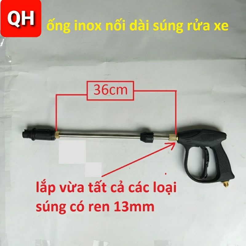 ống nối dài súng rửa xe áp lực cao của máy xịt rửa áp lực - Dài 36 cm - ống nối inox