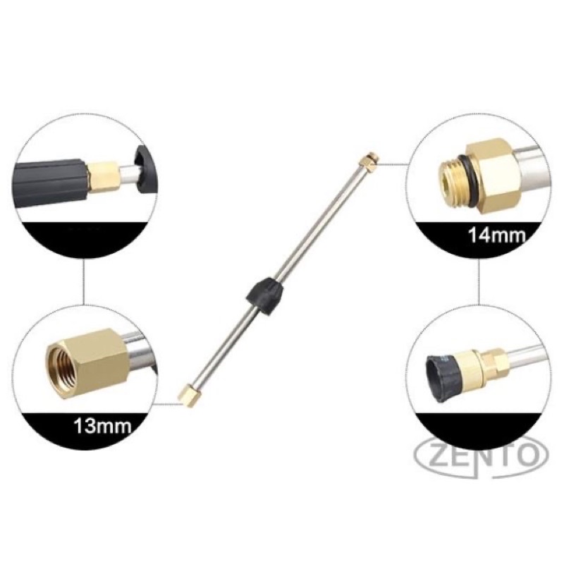 - Ống nối dài có chiều dài lên tới 50cm giúp bạn dễ dàng luôn sâu vào các vị trí khó với tới & tạo 1 khoảng cách nhất định giữa người sử dụng máy bơm xịt rửa xe với vật cần rửa để tránh bắn nước & đảm bảo an toàn hơn.