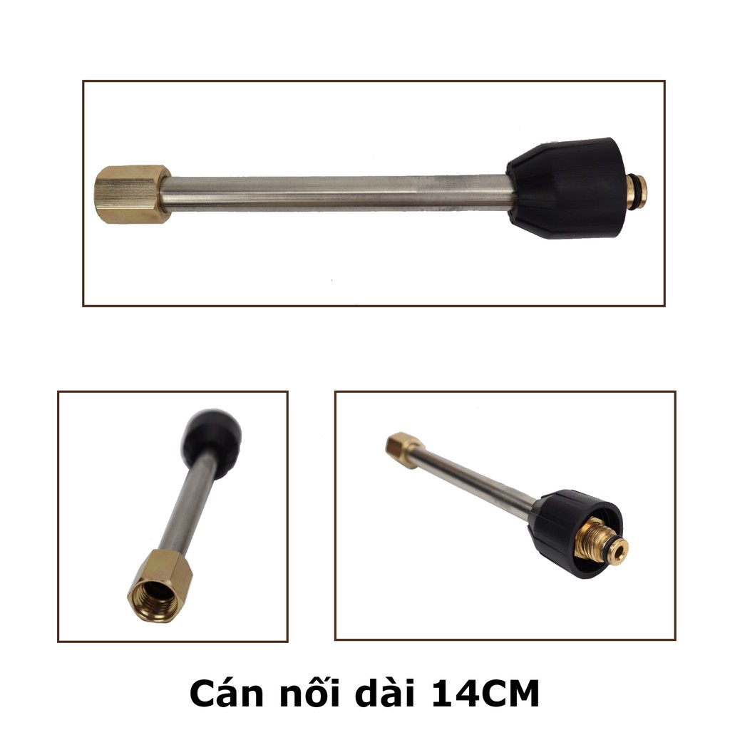 - Ống nối dài có chiều dài lên tới 34.5cm (max) giúp bạn dễ dàng luôn sâu vào các vị trí khó với tới & tạo 1 khoảng cách nhất định giữa người sử dụng máy bơm xịt rửa xe với vật cần rửa để tránh bắn nước & đảm bảo an toàn hơn.