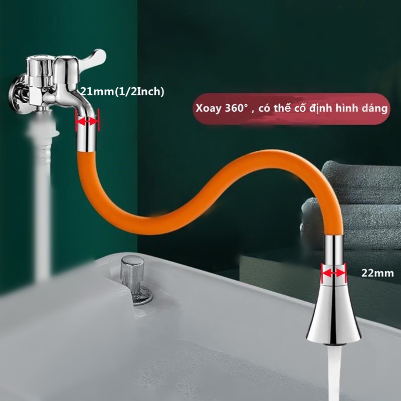 Giới thiệu Ống nối dài vòi nước,ống nối dài vòi nước phi 21mm linh hoạt có thể quay 360° theo mọi hướng, ống nước mở rộng silicone