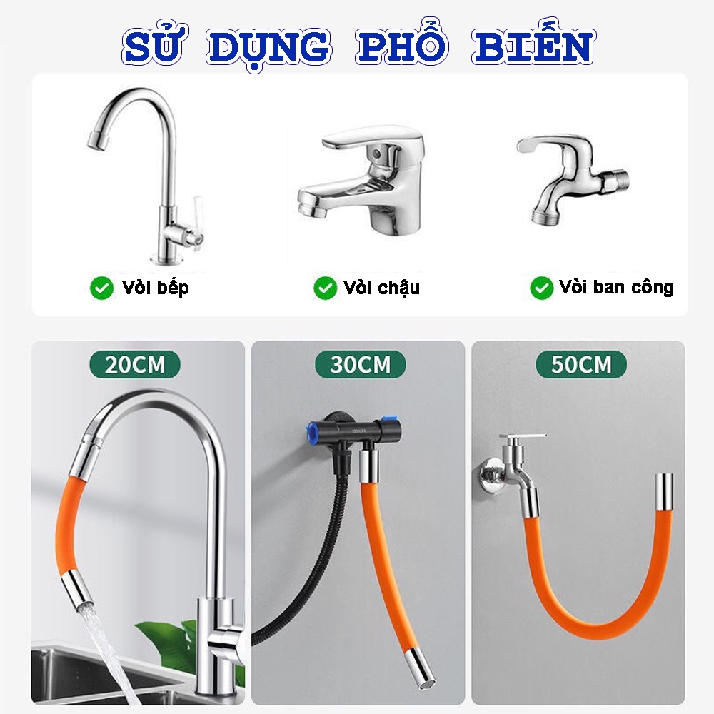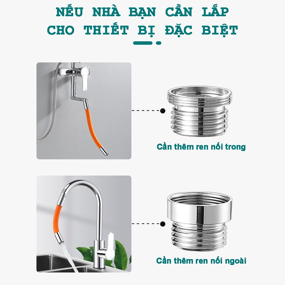 - Dễ dàng biến vòi nước thông thường dài ra giúp dễ dàng vệ sinh hay lau chùi mọi ngóc ngách của bồn rửa nhà bạn.
